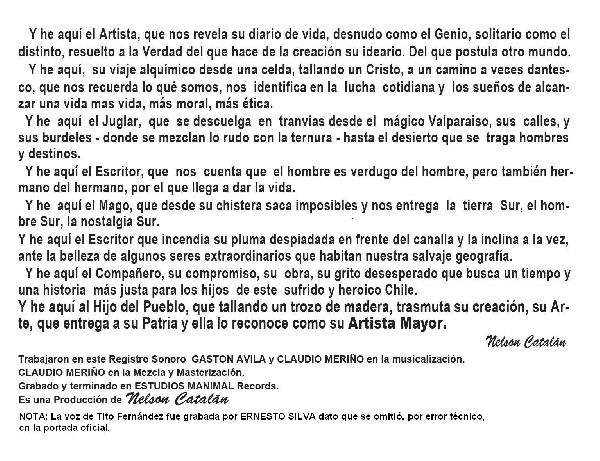 En este listado la mayoría de las letras han sido sacadas escuchándolas directamente desde el disco.